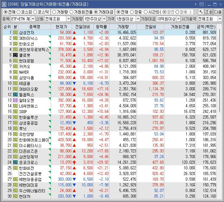 클로봇 | 12.96 | 616,925 | 삼성전자 美 스타게이트 협력 기대감 속 로봇 산업 확대 수혜주 부각 |