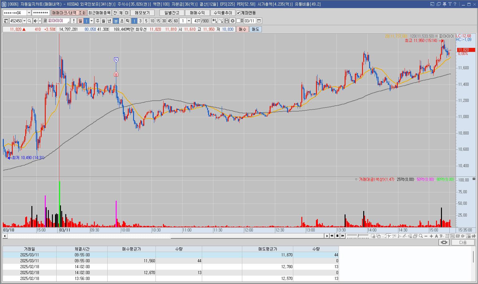 유리기판 전체적으로 상승하려는 모습에 매수세 들어오는 피아이이 매매