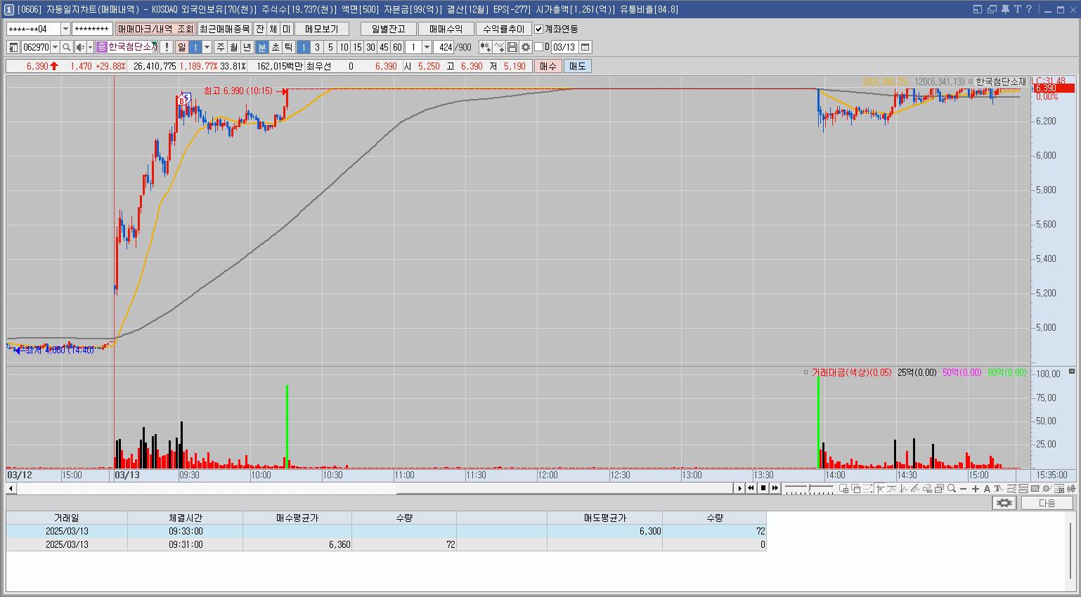 전일 강했던 종목 돌파에 진입했으나 흐름이 좋지 않아서 매도