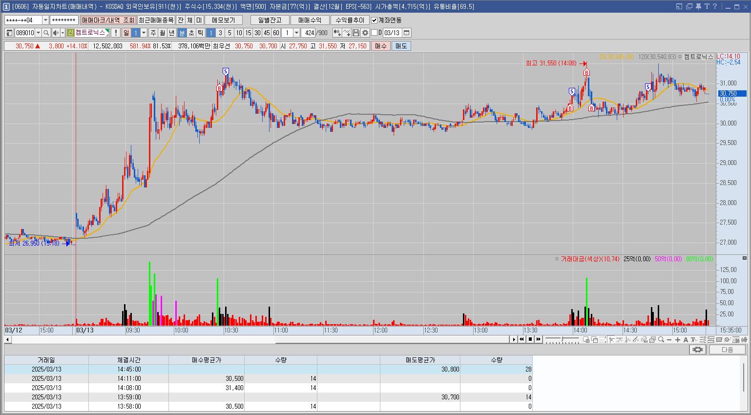 유리기판 관련 뉴스가 나오고 이미 많이 상승한 상태에서 고점에서 스캘핑