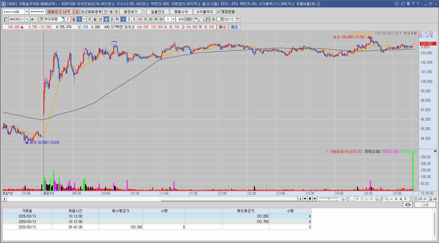 3번째 트라이에 신고가 돌파를 하는 모습에 진입했는데 밀려서 기회를 보다가 홀딩 후 엊그제 클로봇처럼 고점에서 자꾸 파는 모습에 같이 매도