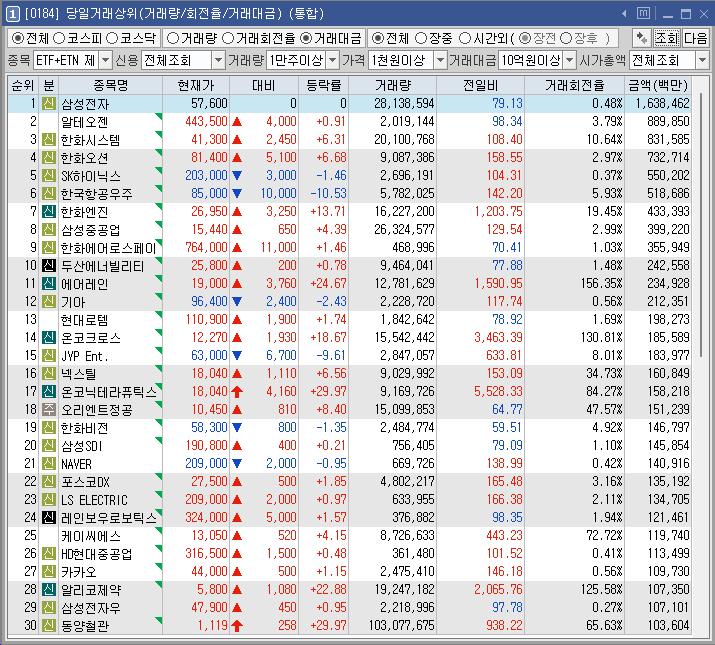 동양철관 | 29.97 | 99,066 | 美 알래스카 주지사 LNG 사업 추진 위해 방한 기대감 속 철강 테마 강세 |