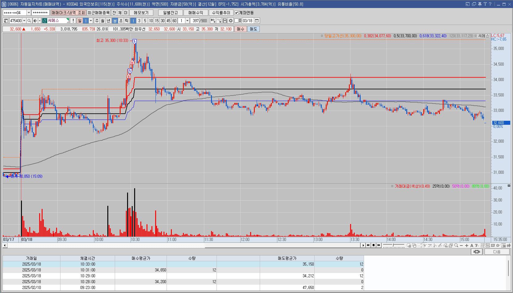 전일 물려서 넘어와서 매매. 신고가 재차 돌파할 때 다시 물렸다.