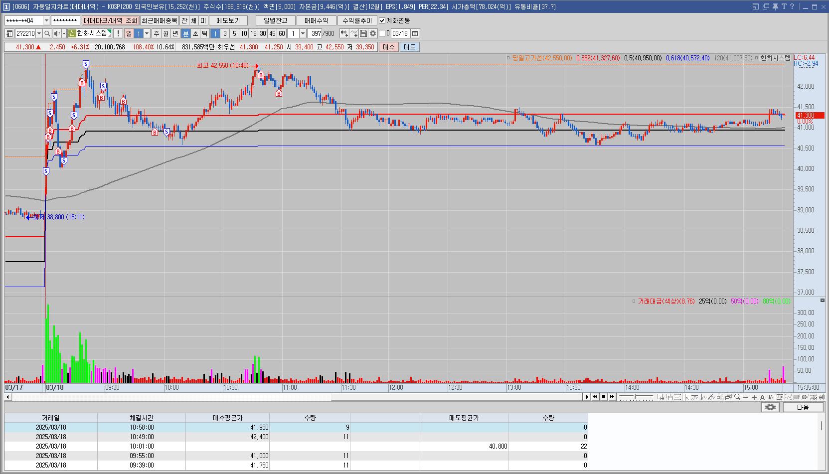 전일 시외 올랐던 종목. 돌파하는 모습에 진입했으나 흐름이 약해서 매도