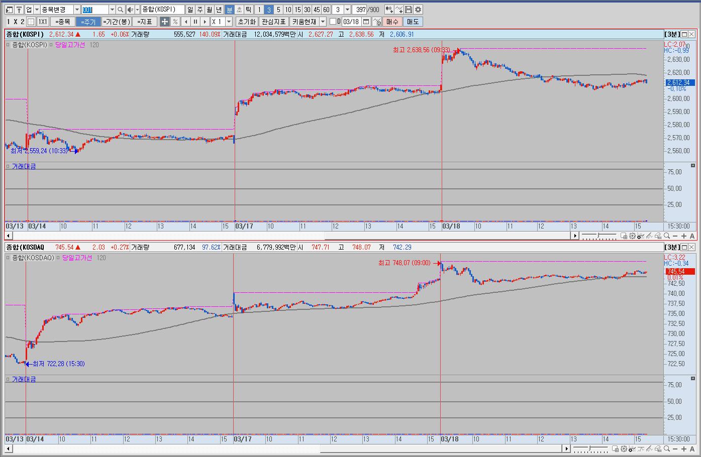 어제와 마찬가지로 알테오젠과 한화그룹주가 거래대금을 흡수했고 전산장애까지 더해 시장 움직임이 좋지 않았