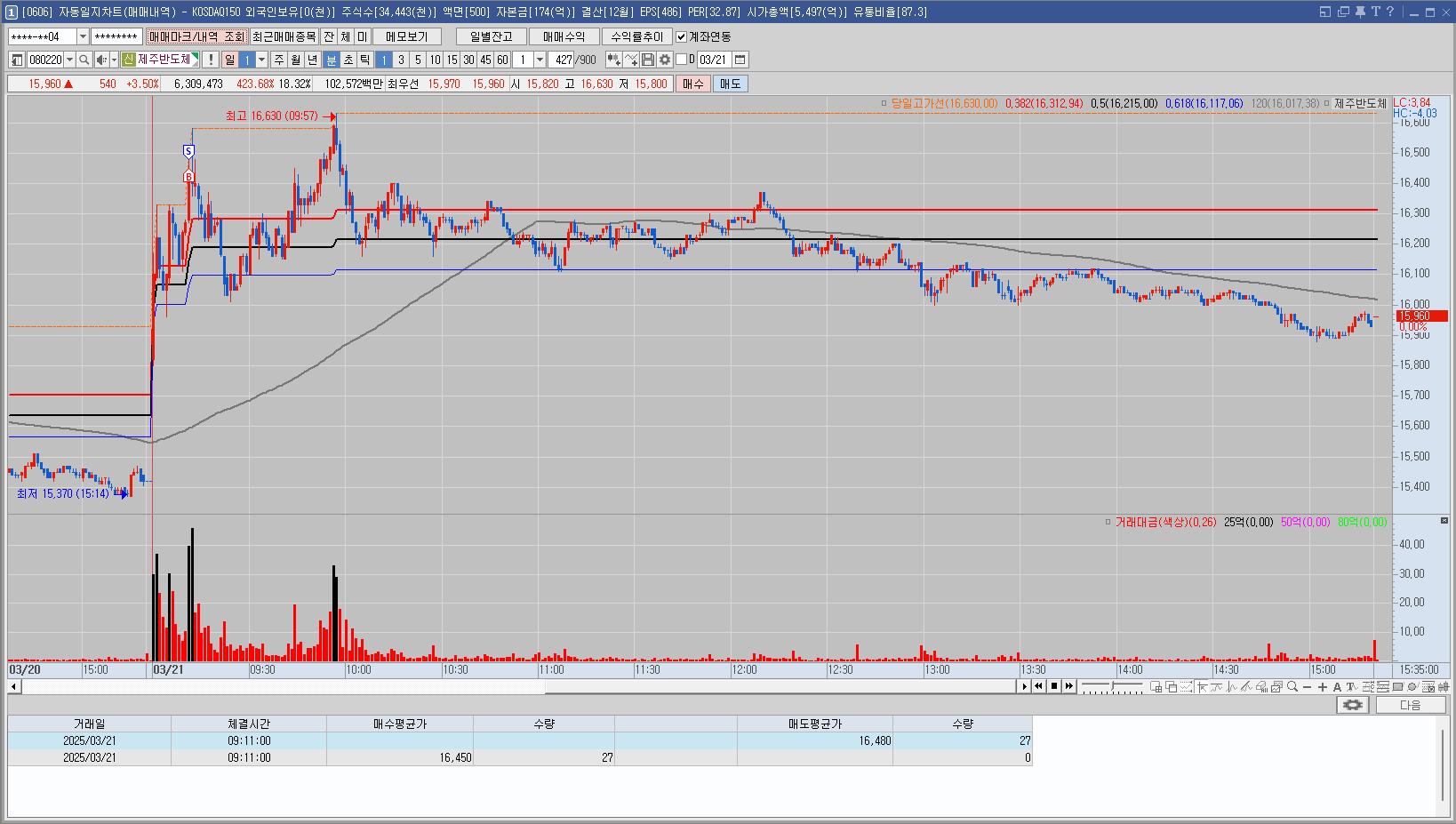 장 초반 반도체 관련주들이 상승하는 모습에 돌파하는 이 종목을 매수했지만 역시 힘이 부족한 모습에 매도