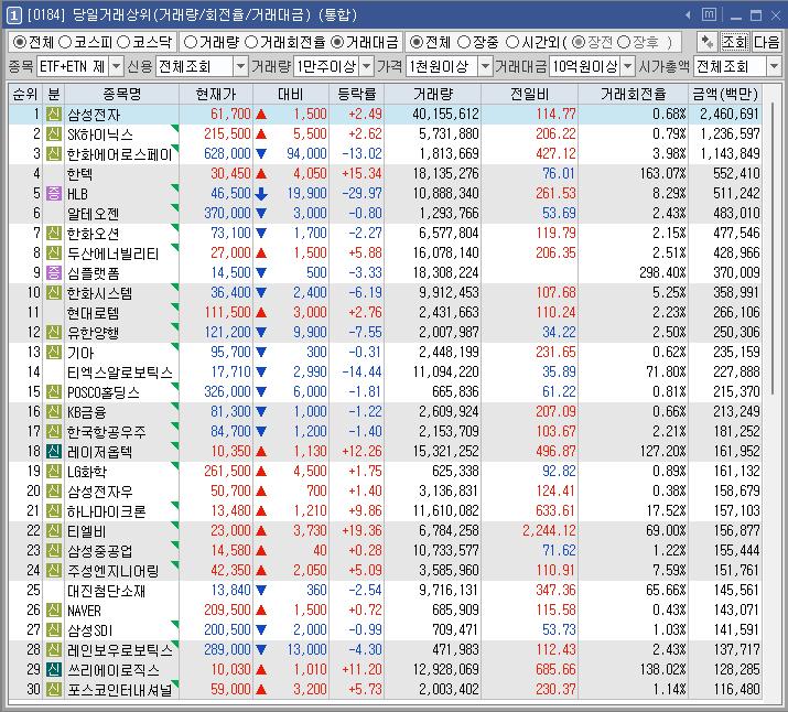 HLB 그룹주들이 대거 하한가 + 세계 시장들 약세에 우리나라 시장도 흐름이 안좋았는데 그 때문인지 상대적으로 좋은 한텍으로 매수세가 몰렸다