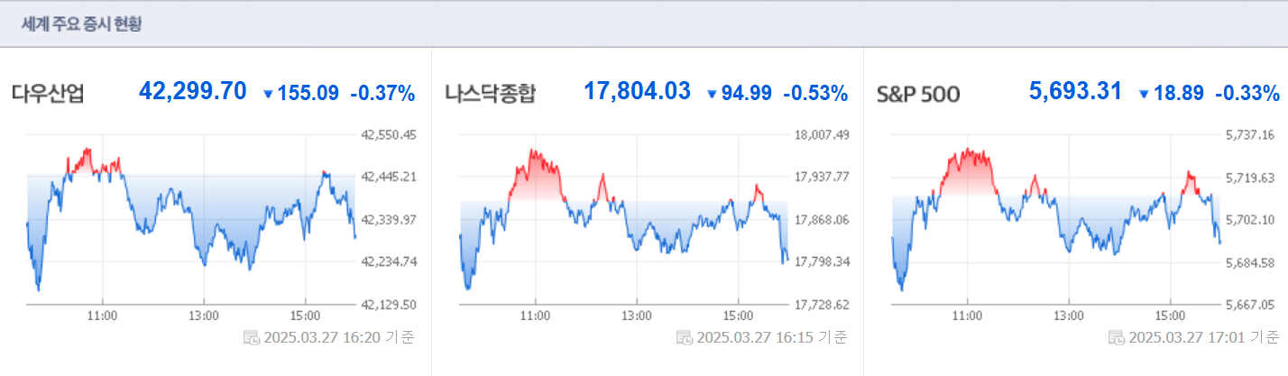 뉴욕증시는 트럼프 자동차 관세 발표 영향 등에 하락