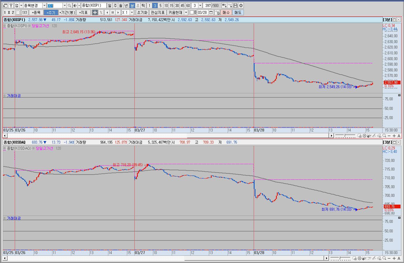 장중 매매를 하려면 매수 이유가 분명한 주도 종목에서 지지가 될때 눌림매매를 시도해보는 정도...