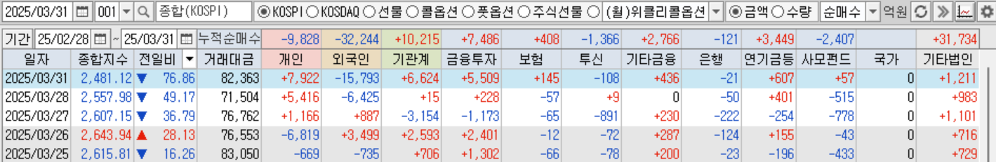 2025년 3월 31일(월) 하락장에도 강한 종목이 나올 수 있다