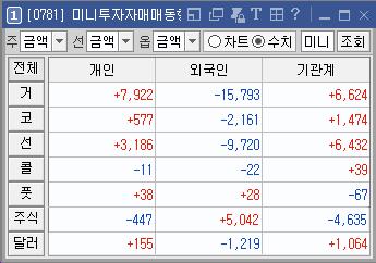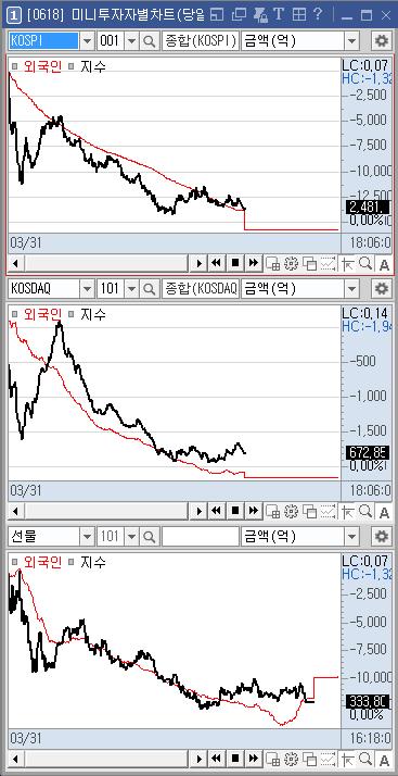 외국인의 매도세가 큰 가운데 개인과 기관이 매수