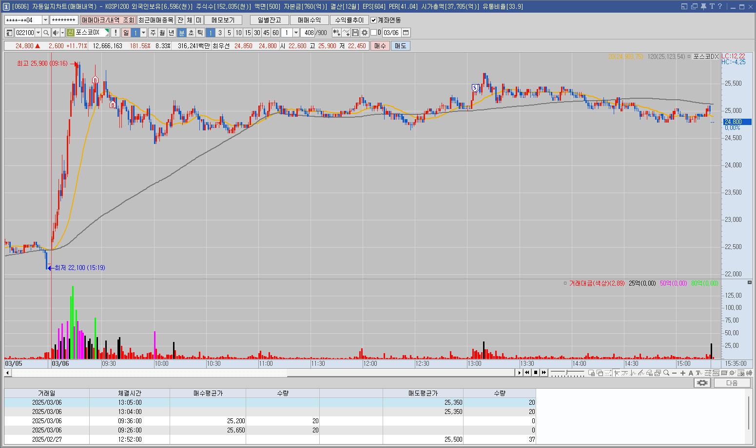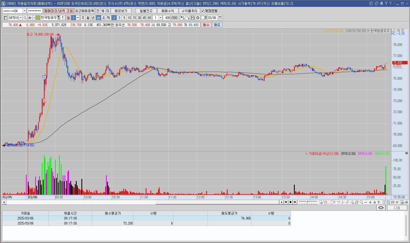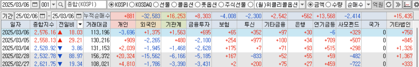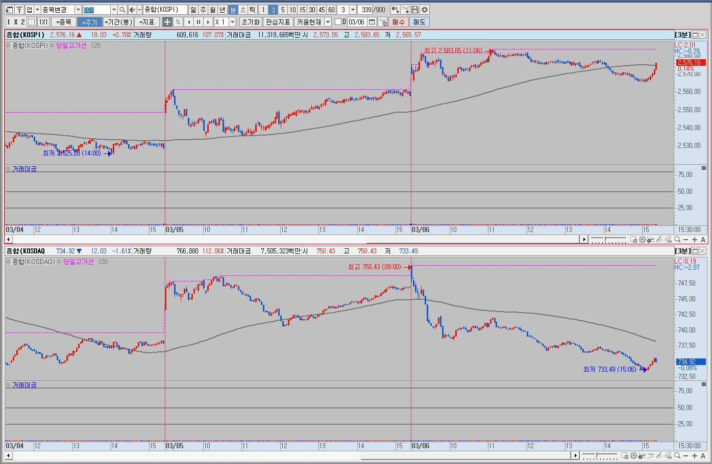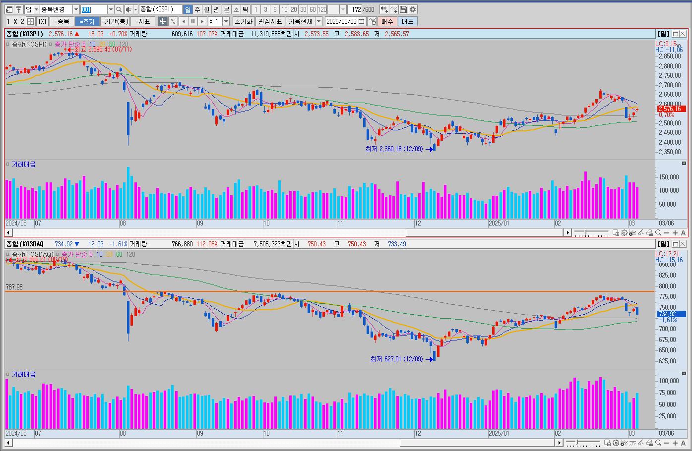 2025년 3월 6일(목) 지수가 연속 상승할 때 저항선을 찾아보고 조정이 올 것을 생각하자