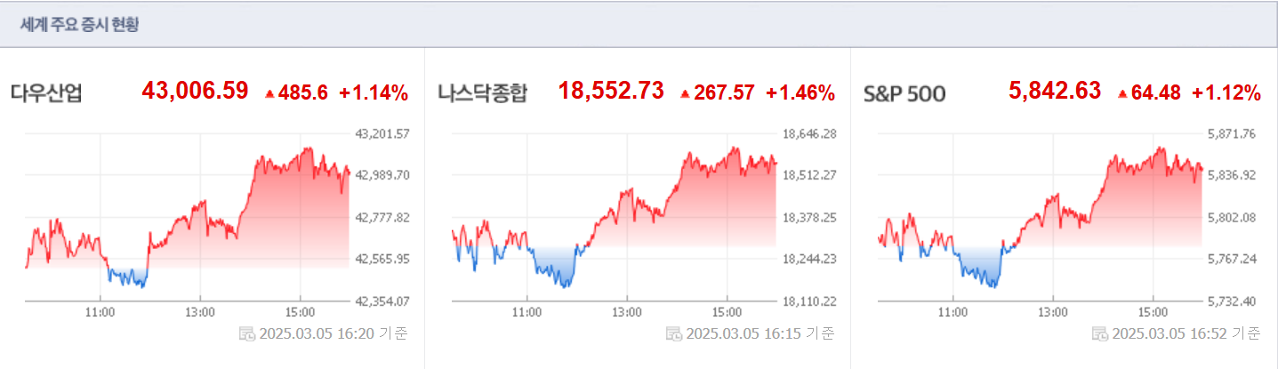 뉴욕증시는 트럼프, 캐나다 멕시코 차 관세 유예 등에 큰 폭 상승
