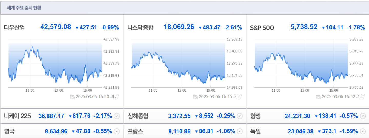 뉴욕증시는 트럼프의 캐나다 멕시코 관세 유예에도 관세 불확실성 지속 등에 하락