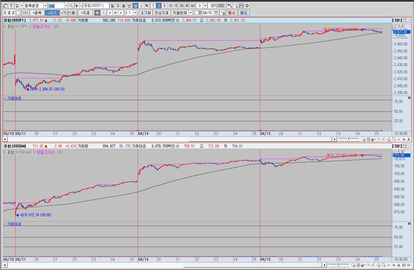 우리나라는 상승 출발해서 지속되다 장 후반에 소폭 하락