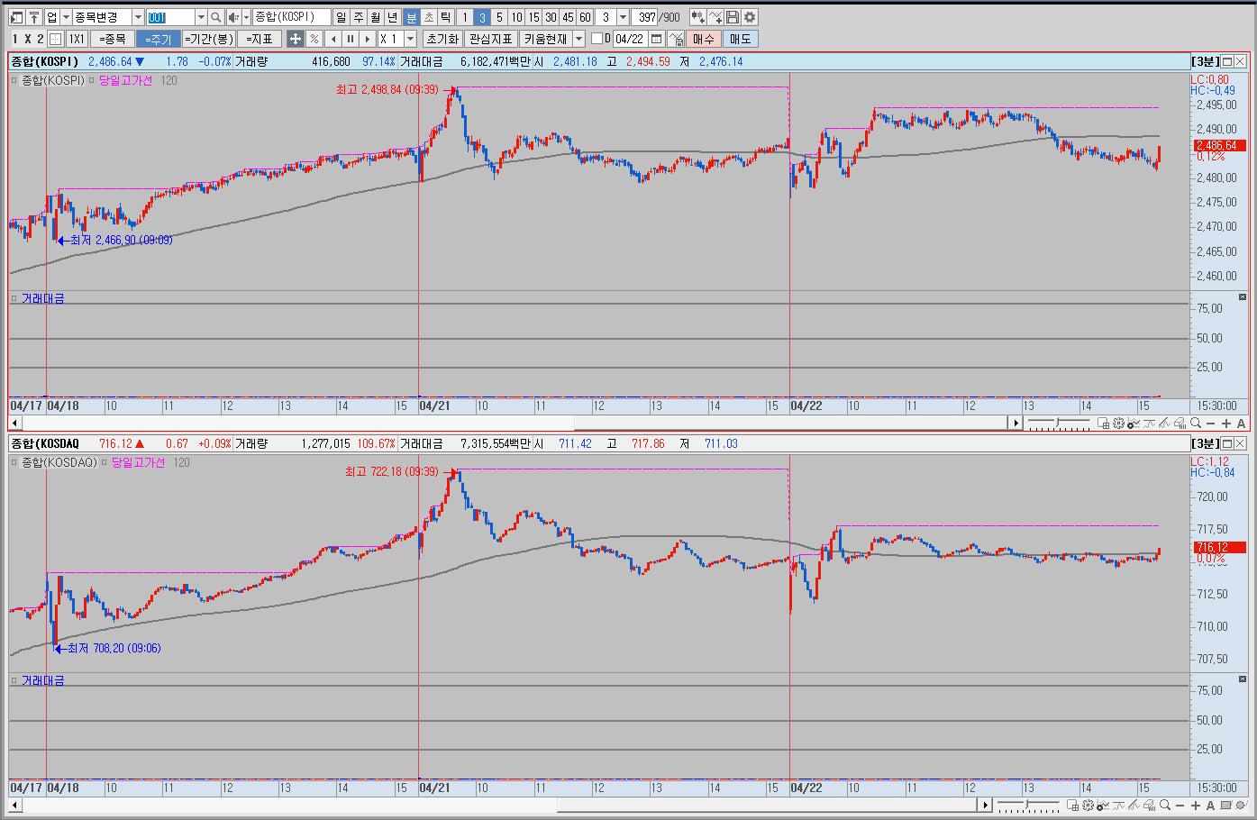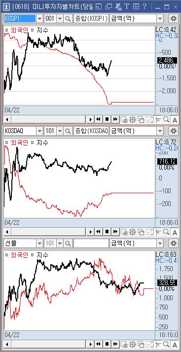 우리나라는 소폭 하락 출발해서 상승하다가 횡보후 하락