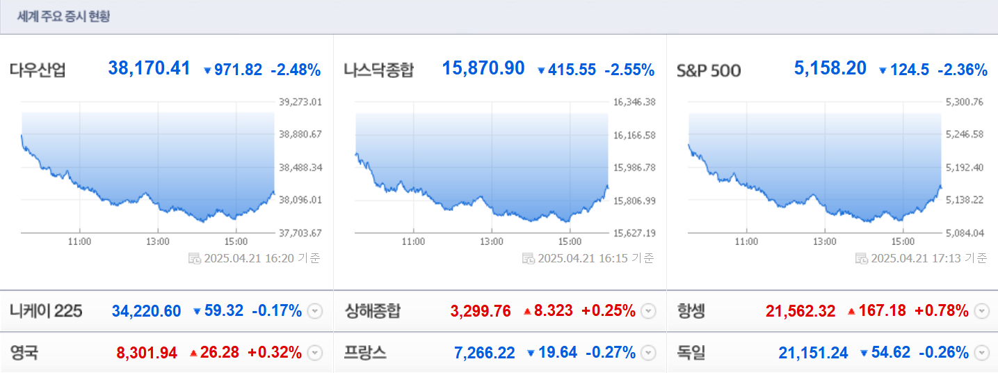 뉴욕증시는 트럼프 대통령의 파월 Fed 압박 지속 및 관세 정책 불확실성 지속 등에 급락