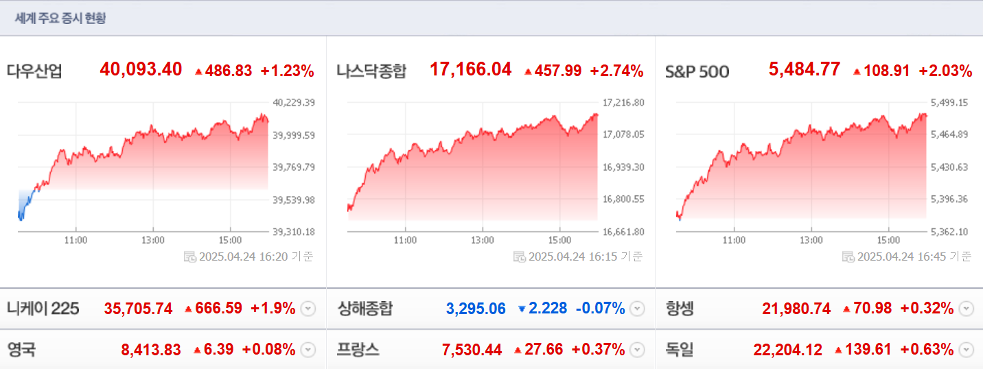 뉴욕증시가 관세 협상 진전 기대감 및 Fed 금리 인하 기대감 등에 상승