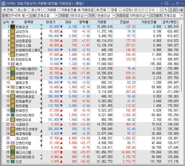 대한제당 | -2.00 | 1,369 | 일부 한덕수 테마 하락 |