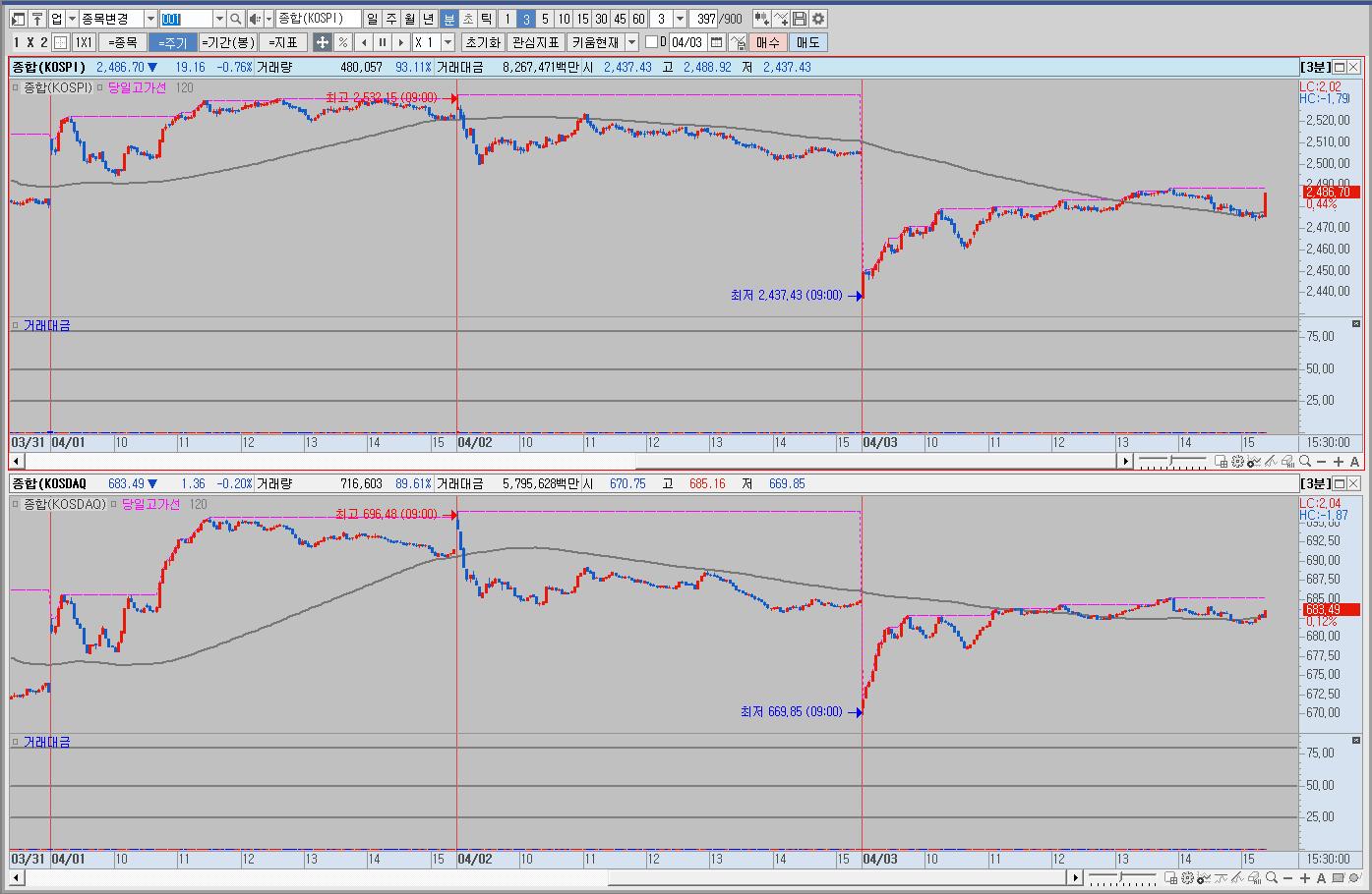 미 선물지수가 급락하면서 우리나라 지수는 급락 출발했으나 바로 상승이 나오면서 낙폭을 만회
