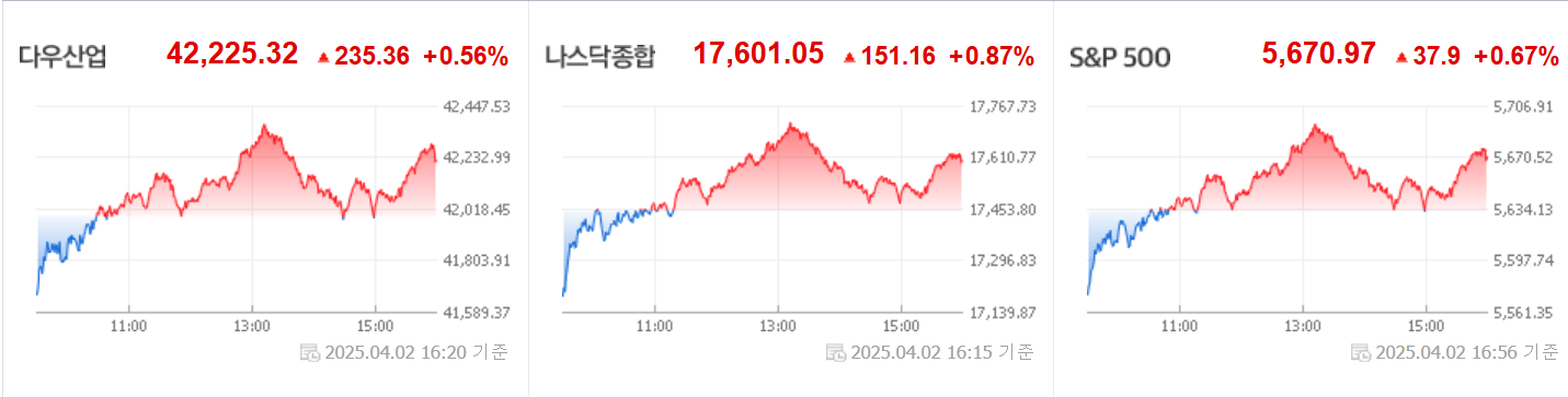 뉴욕증시는 트럼프 상호관세 발표 대기 속 불확실성 해소 기대감 등에 상승