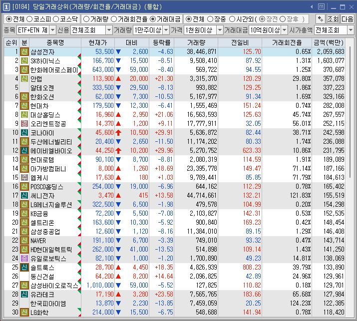 종목명 | 등락률 | 거래대금(백만) | 이유 |