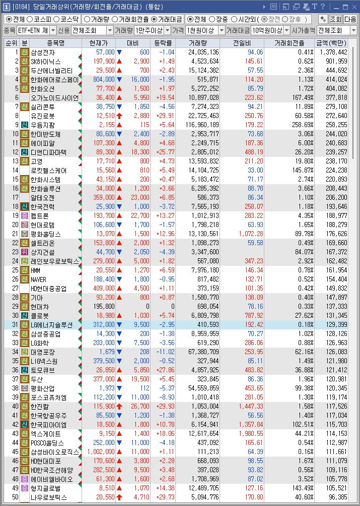 한진칼 | 29.93 | 117,339 | 호반건설과 경영권 분쟁 가능성에 강세 |