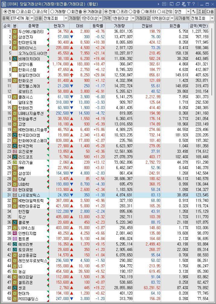 한미반도체 | 9.52 | 693,073 | SK하이닉스에 428억원 규모 TC 본더 공급 소식 |