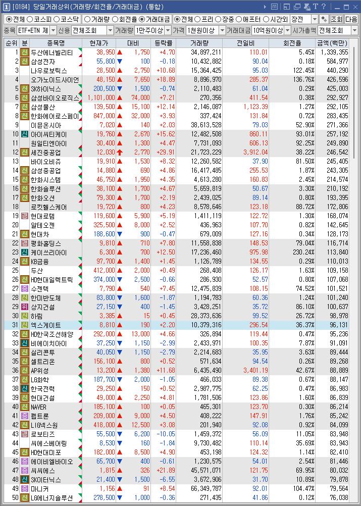 세진중공업 | 29.91 | 245,891 | 미국과 조선 협력 기대감 속 조선업 테마 강세 조선 밸류체인 상장사 중 가장 높은 수익성을 기록 분석 |