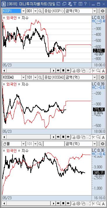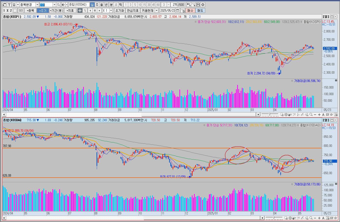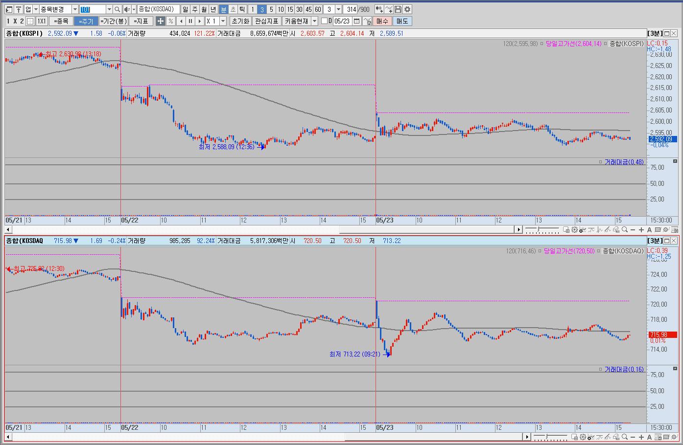 우리나라는 상승 출발해서 하락후 등락하며 횡보