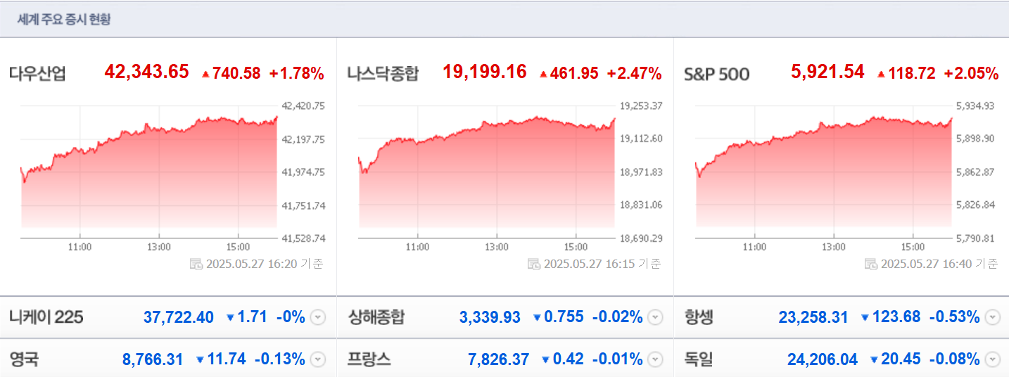 뉴욕증시는 美,EU 무역협상 진전 기대감, 美소비심리 개선 등에 큰폭으로 상승