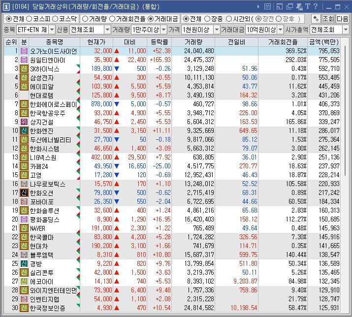 종목명 | 등락률 | 거래대금(백만) | 이유 |