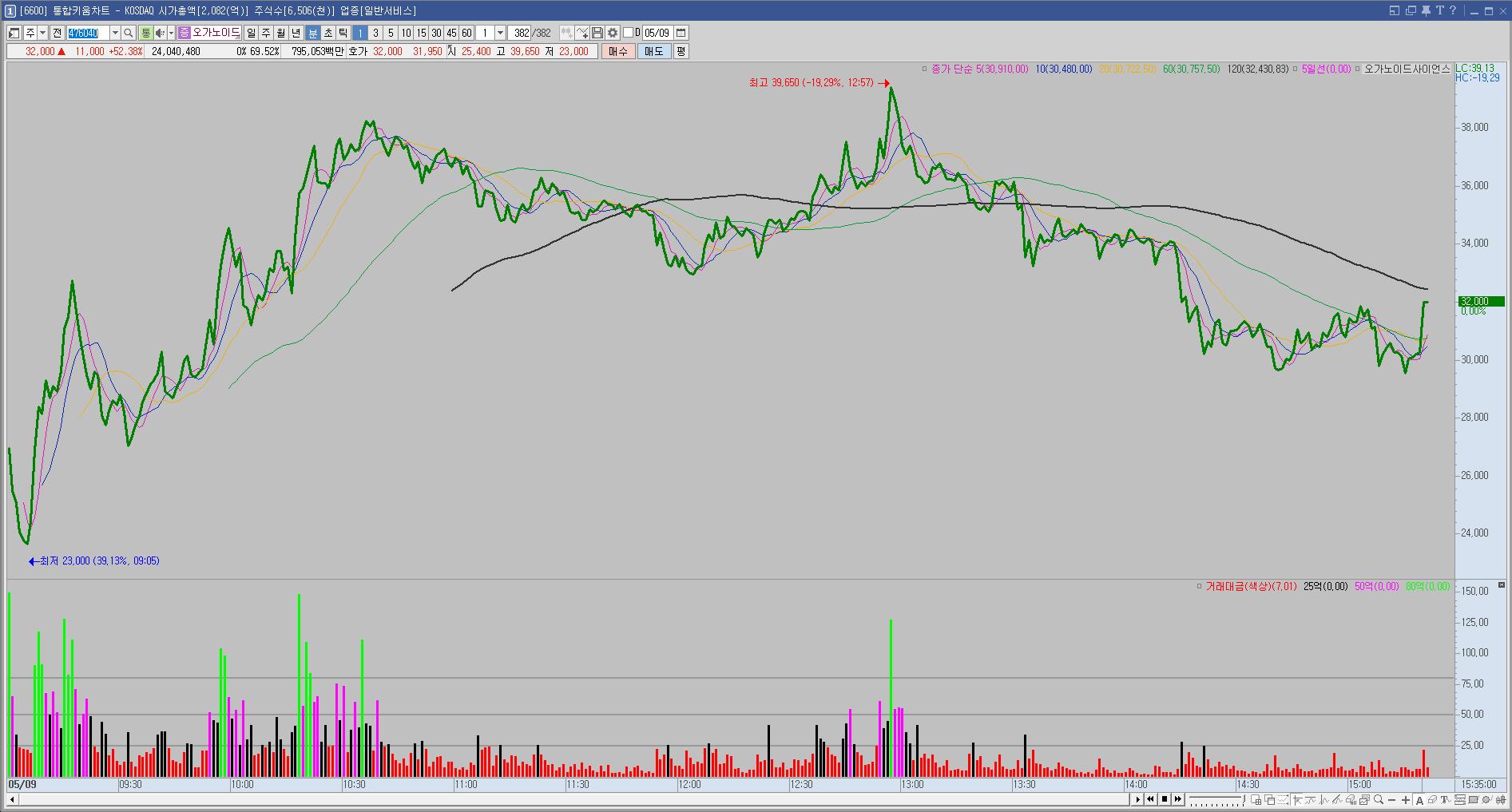 아침부터 뚜렷하게 움직이는 종목이 없이 지수 하락 분위기가 형성되어서인지