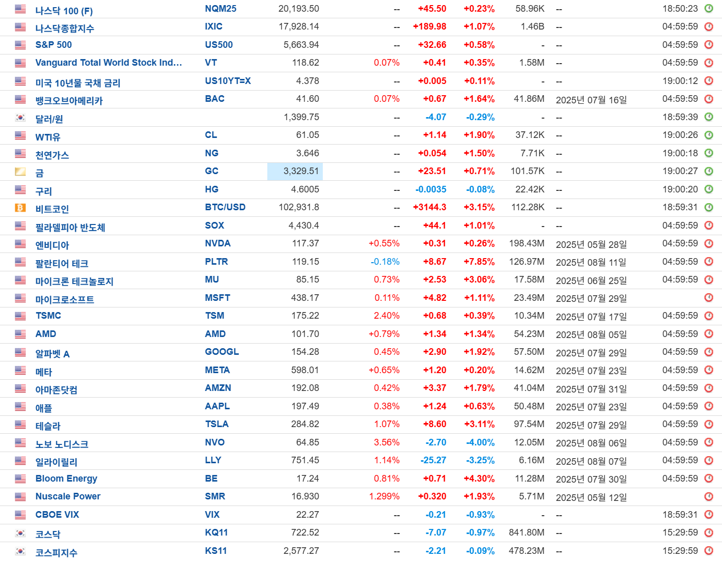 주요 종목 흐름