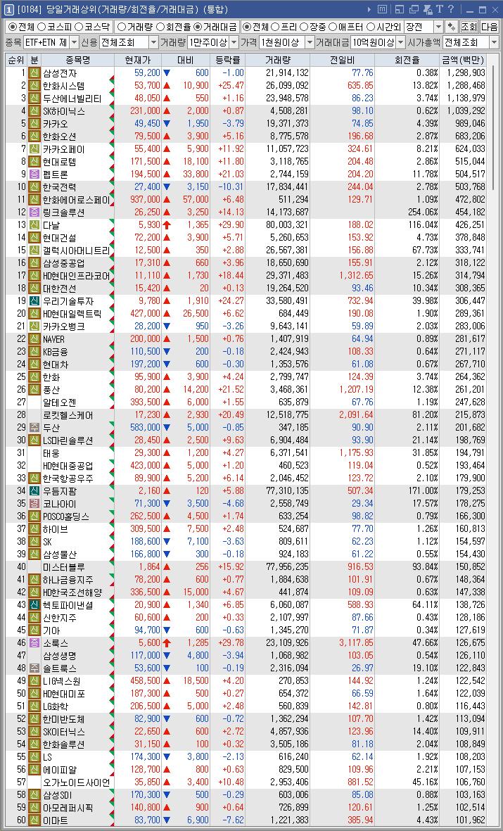 우리기술투자 | 20.08 | 291,430 | '원화 스테이블코인' 도입 기대감 지속 속 가상화폐 테마 강세 |