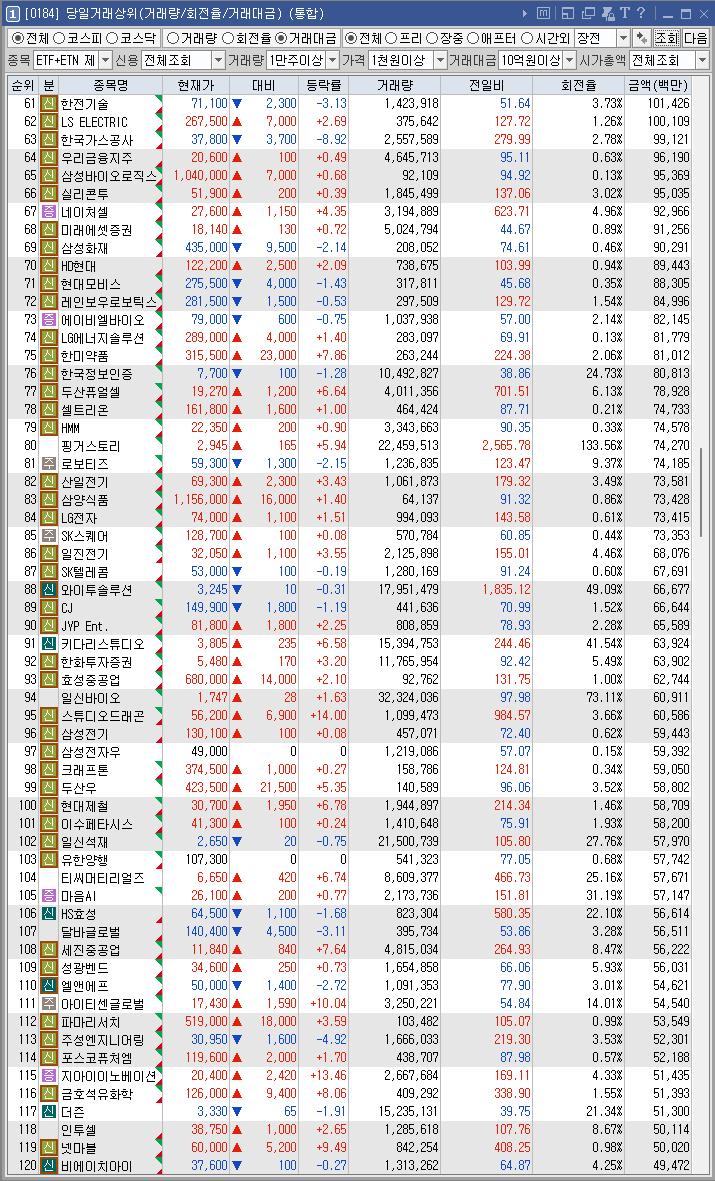 헥토파이낸셜 | 10.69 | 137,751 | '원화 스테이블코인' 도입 기대감 지속 속 전자결제 테마 강세 |