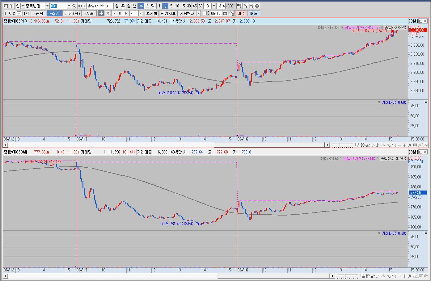 우리나라는 상승 출발해서 하락했다가 상승폭 확대