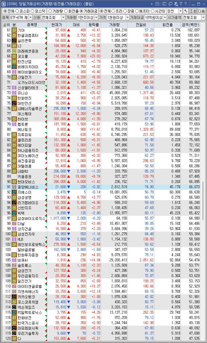 한화시스템 18.01 1,308,977 이란-이스라엘 충돌 격화 속 방산 테마 강세