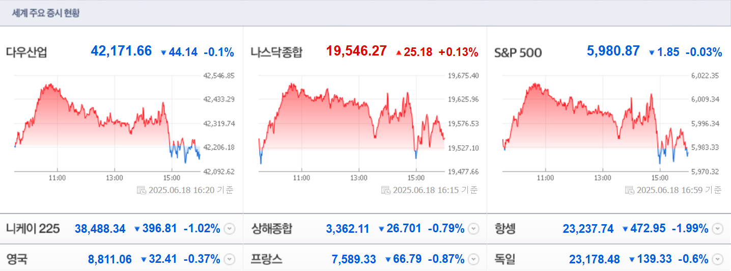 FOMC 금리 동결, 이스라엘이 이란 수도 테헤란과 아라크의 중수로 핵 시설을 공습했고 이에 이란은 20발 이상의 미사일로 반격했다는 소식 등에 불확실성 부각