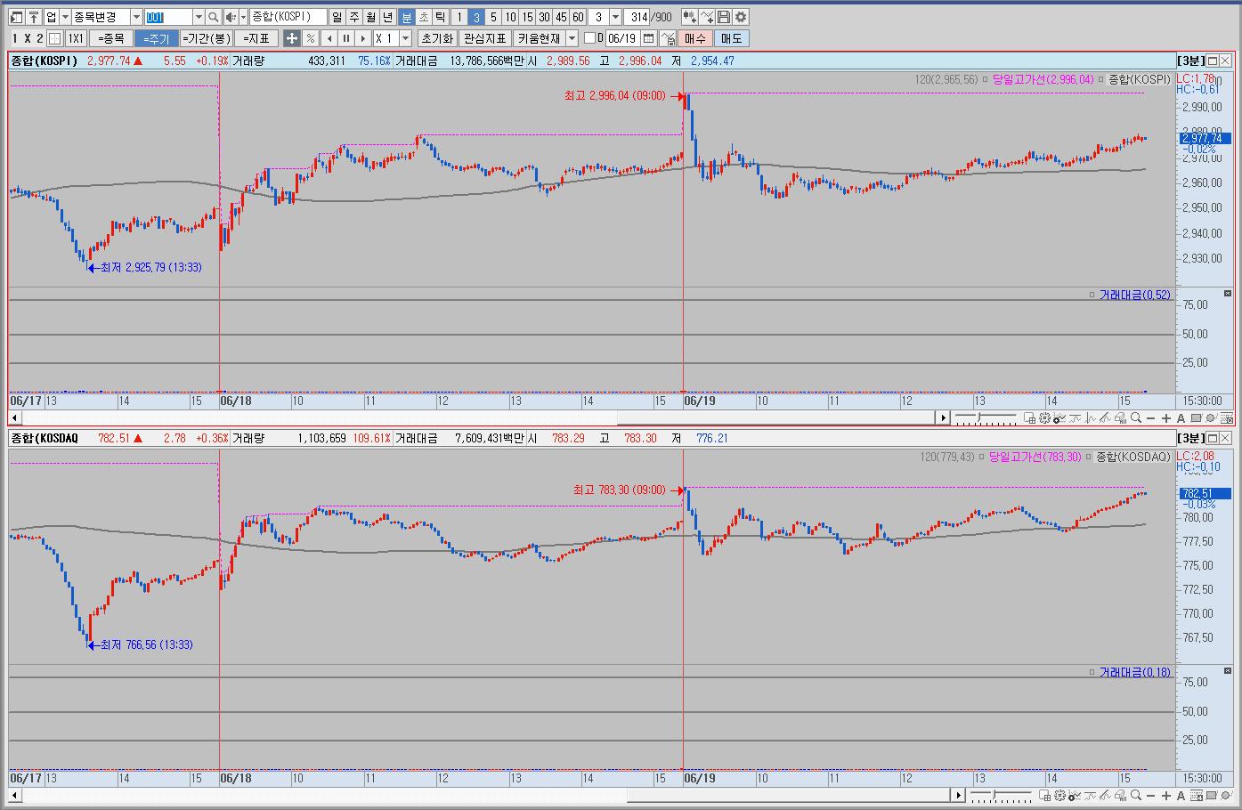 우리나라는 상승출발했지만 곧바로 급락했고 장중 저점을 잡고 서서히 반등