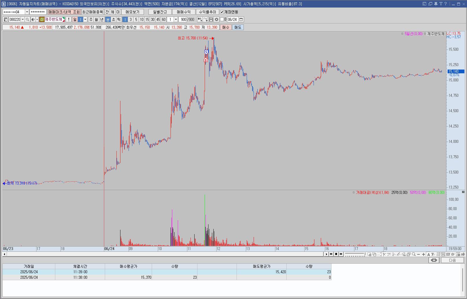 반도체 대장들이 매우 강한 가운데 이 종목이 상승중이라 매매를 했는데 움직임이 이상해서 손절