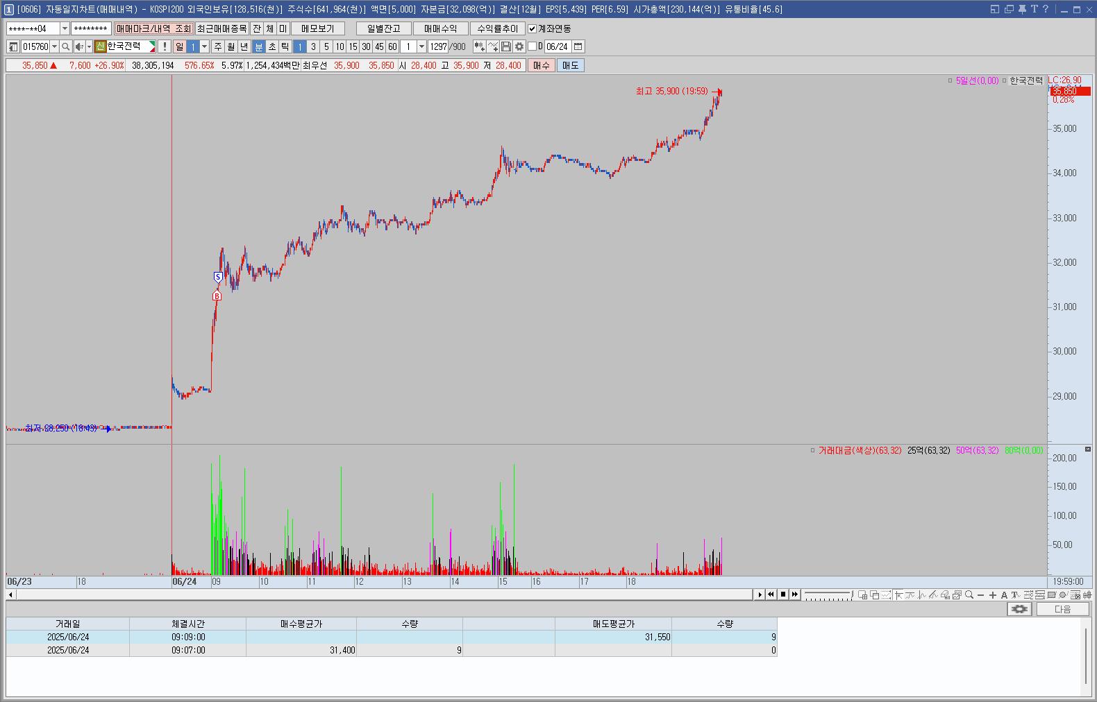 거래대금을 동반한 상승이지만 너무 가파르게 상승했고 한국전력에 대한 편견으로 버티지 못했다