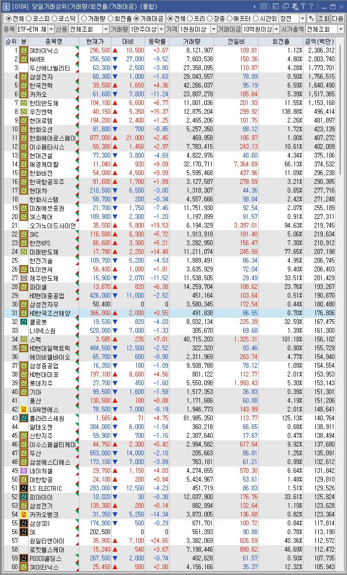 스맥 | 12.69 | 149,411 | SNT홀딩스로 일시적 최대주주 변경 소식 지속 |