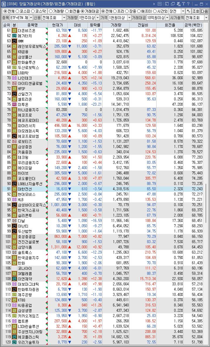 RFHIC | 11.39 | 48,084 | 방산 실적 개선 기대감 |