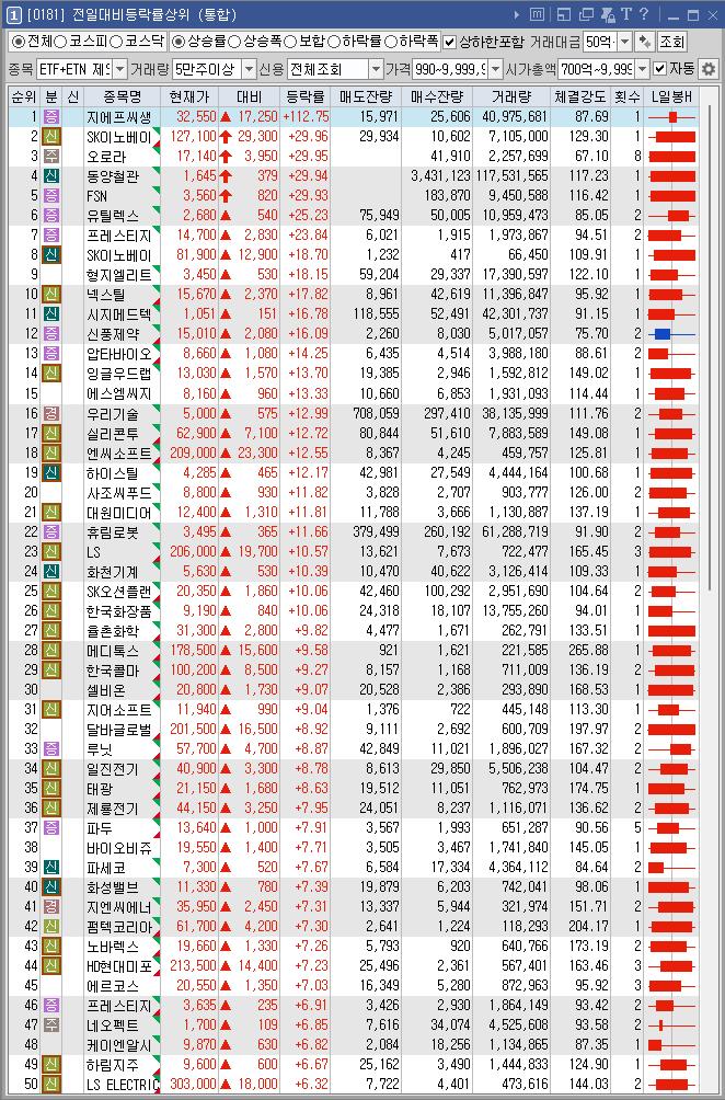 대형주들 위주로 큰 수급이 붙으며 변동폭을 20%~상한가까지 만들며 강한 상승세를 보임