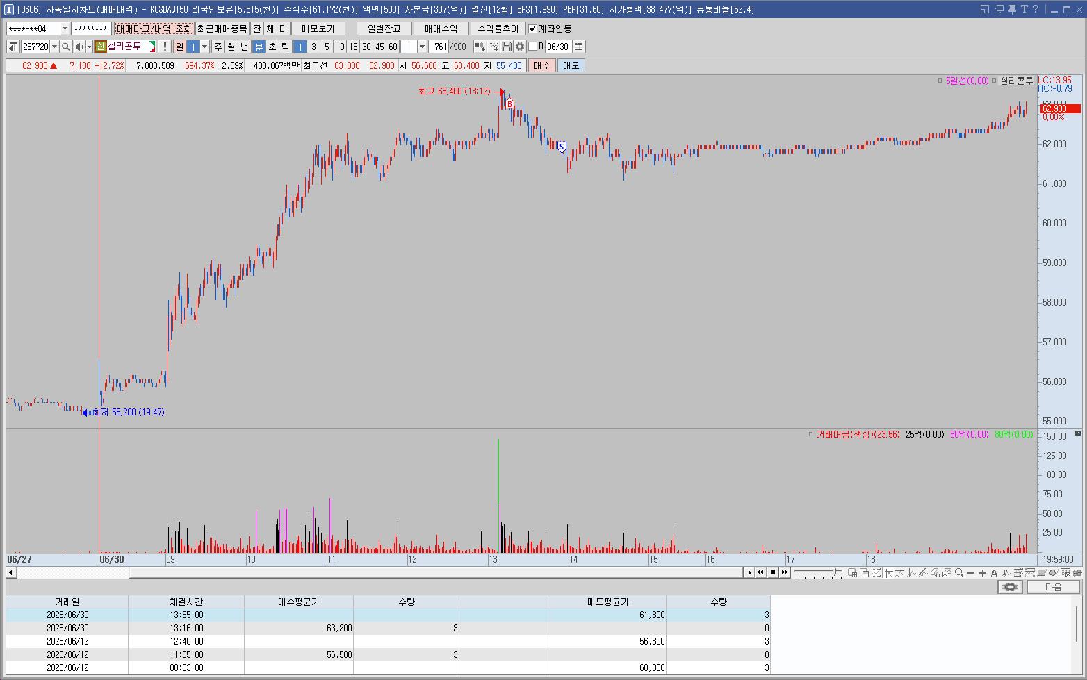 너무 빠른 분봉 흐름의 종목은 매매가 어렵고 내 예상대로 움직여주는 종목은 그나마 조금 더 버틸수가 있는 것 같다