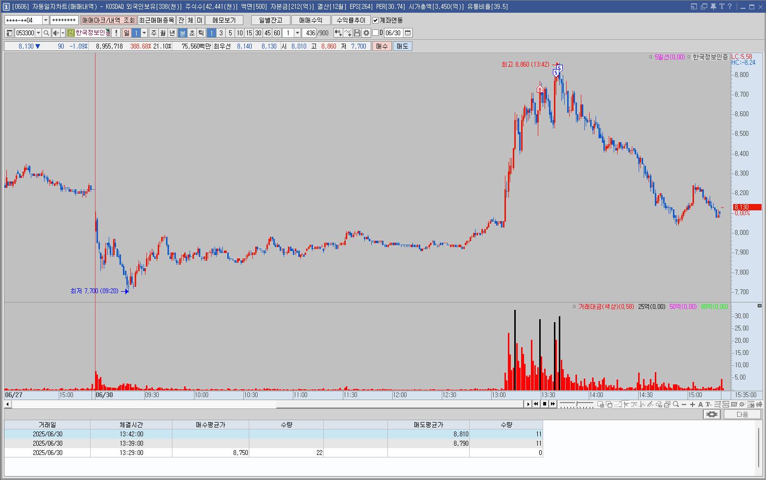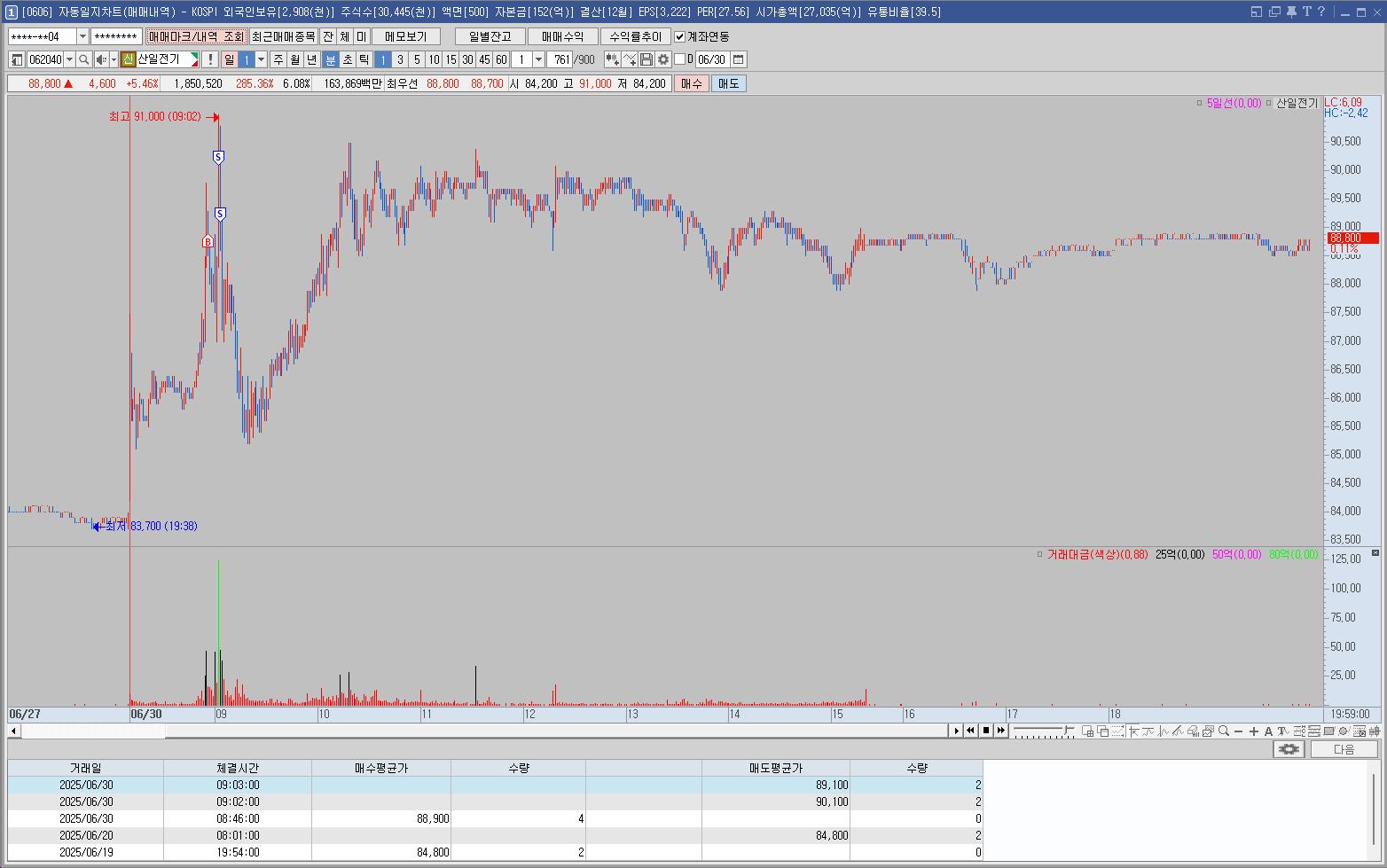 시황이 전력관련으로 부각 되는 모습에 전력기기 관련주들을 보고 있다가 매매했는데 분봉 움직임이 좀 극단적이어서 털림