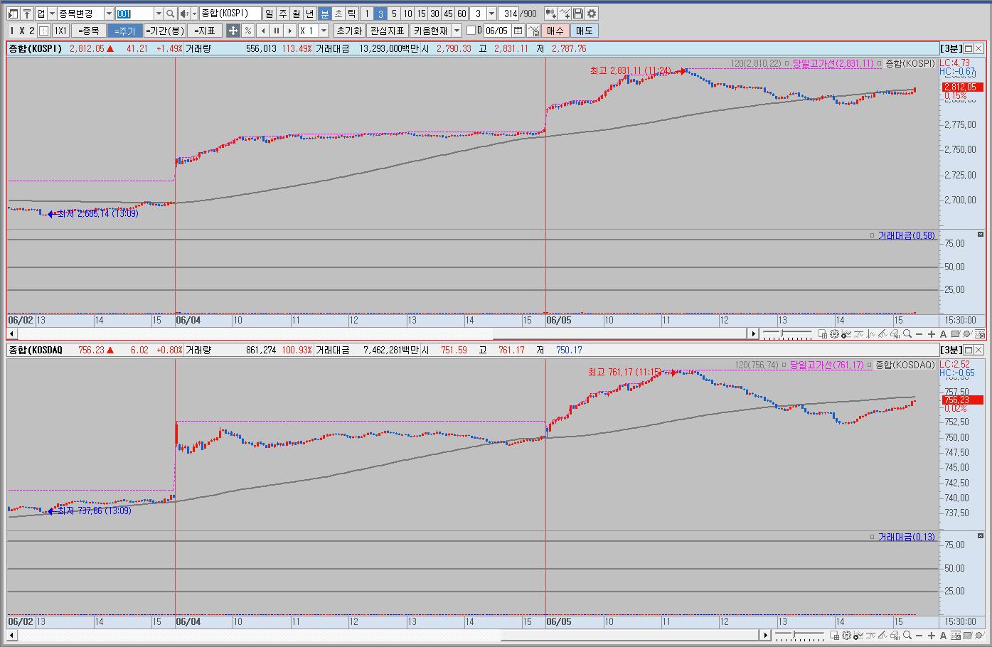 우리나라는 상승 출발해서 등락하다 상승 마감