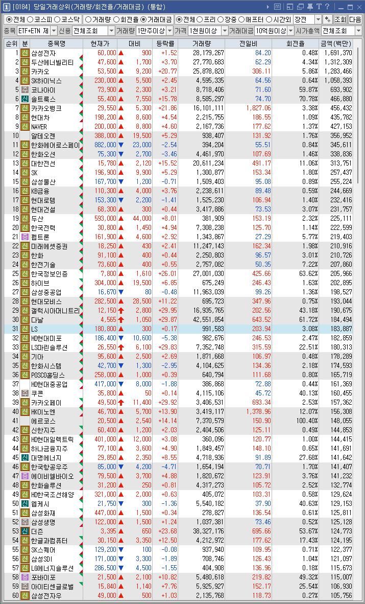 더즌 | 23.68 | 123,716 | 원화 스테이블코인 도입 추진에 카카오페이 강세 속 카카오페이가 동사 2대주주 부각 강세 |