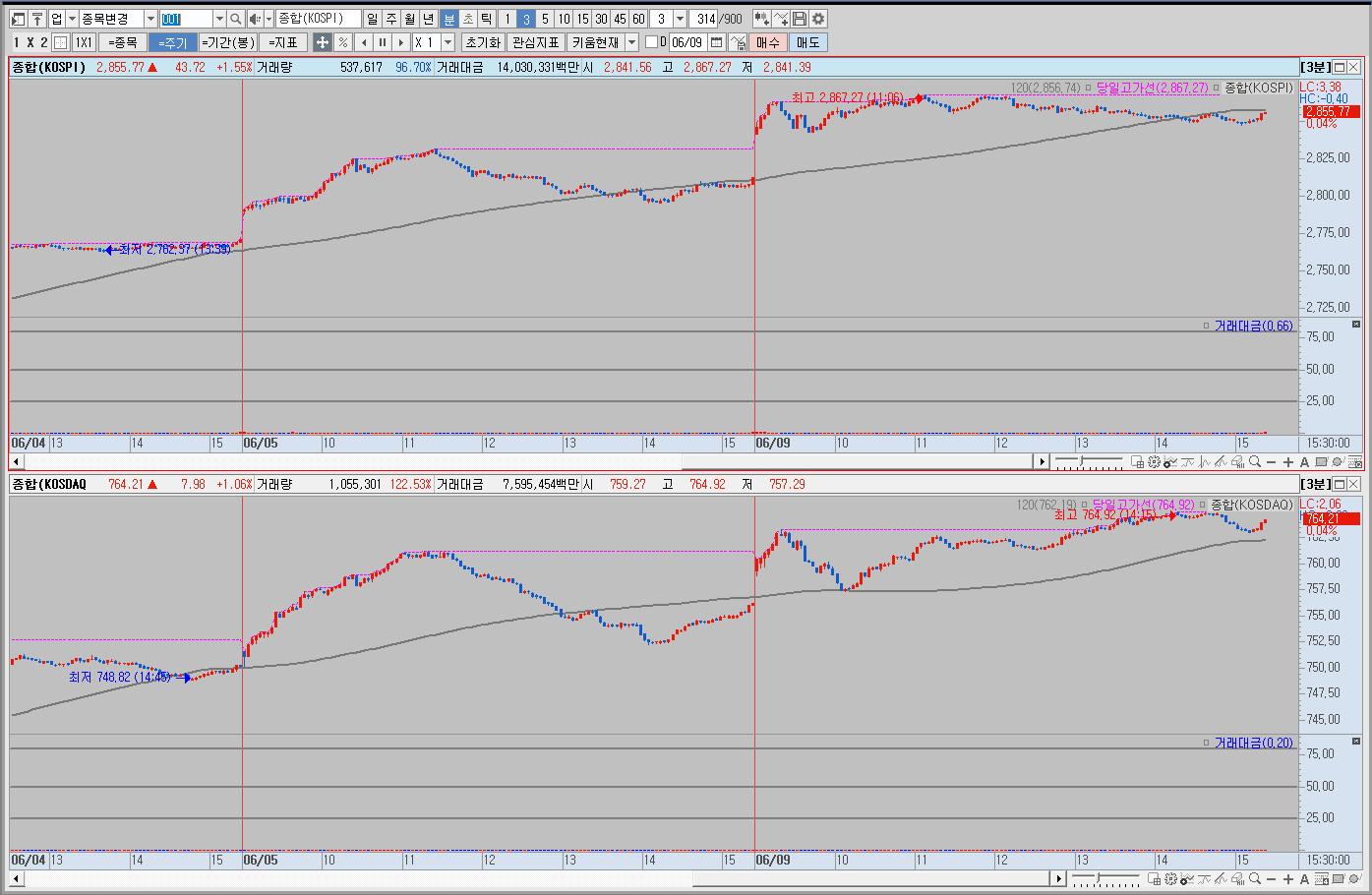 우리나라는 상승 출발해서 등락하다 상승 마감